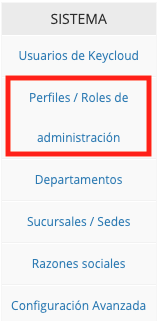 2.- Dentro del menú Configuración, nos dirigiremos al sub-menú Sistema y seleccionaremos la opción Perfiles/Roles de Administración