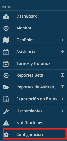 1.- Seleccionaremos la opción Configuración en el menú que se encuentra a la izquierda de la pantalla: